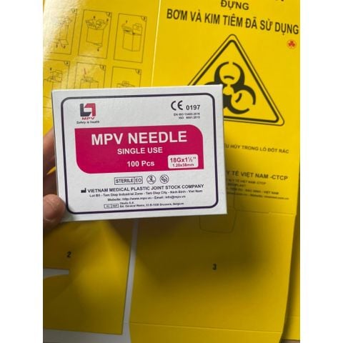 Hộp kim tiêm 18G MPV – 100 cái là kim tiêm y tế vô trùng dùng một lần do Công ty Cổ phần Nhựa Y Tế Việt Nam (MPV) sản xuất. Kim 18G có đường kính lớn, kích thước 18G x 1½” (1,2 x 38 mm), phù hợp dùng để rút dịch, hút dung dịch, truyền dịch hoặc các thủ thuật cần lưu lượng nhanh. Mỗi kim được đóng gói vô trùng EO, an toàn cho phòng khám và bệnh viện.